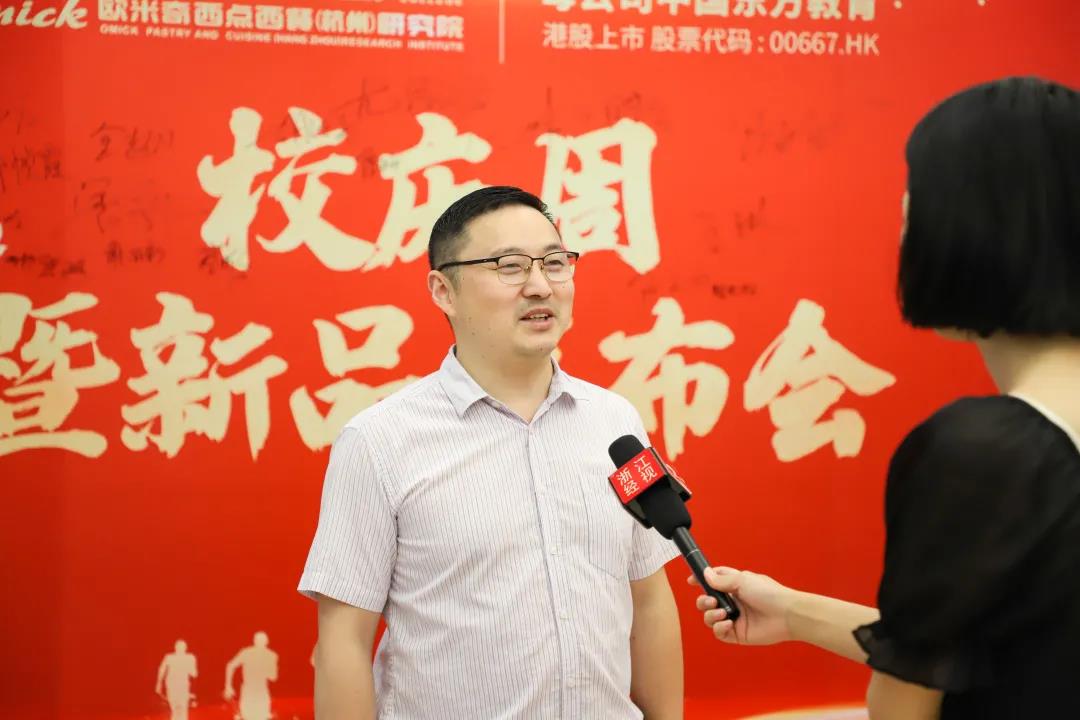7月18日上午9:30,新老学员陆续到校签到,在二楼大厅等待开幕式的举行,杭州欧米奇的学子风采由此展现!与此同时,浙江电视台的记者也抵达活动现场进行专访,记录下本次校庆暨新品发布会活动。