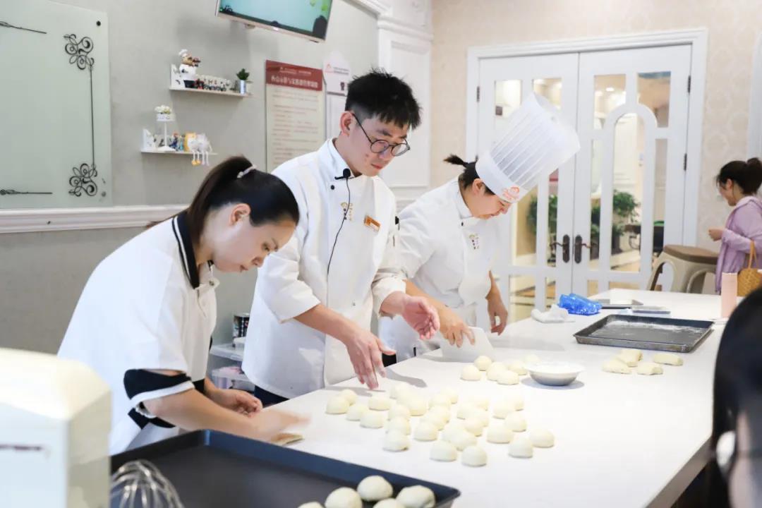 上午的教学主要是新品面包,由万彪老师主讲,樊思宇老师配合,共同联手为大家带来。老师的详细讲解,在场学子的认真听讲,体现了杭州欧米奇浓厚的课堂氛围。