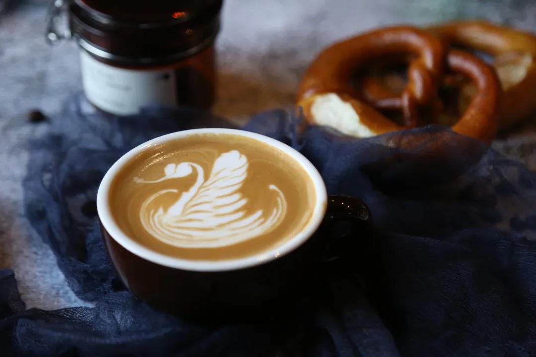 意式咖啡机萃取双份浓缩咖啡至杯中,将打发好的奶泡倒入拉花缸中后,就可以开始我们今天的关键步骤——拉花啦!