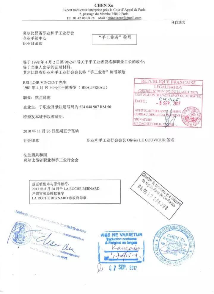 并被授予法国“手工业者”荣誉称号