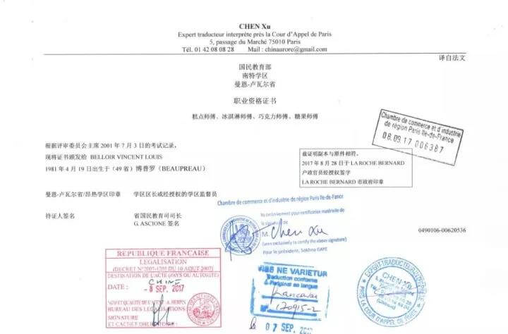 他曾获国民教育部西点职业资格证书