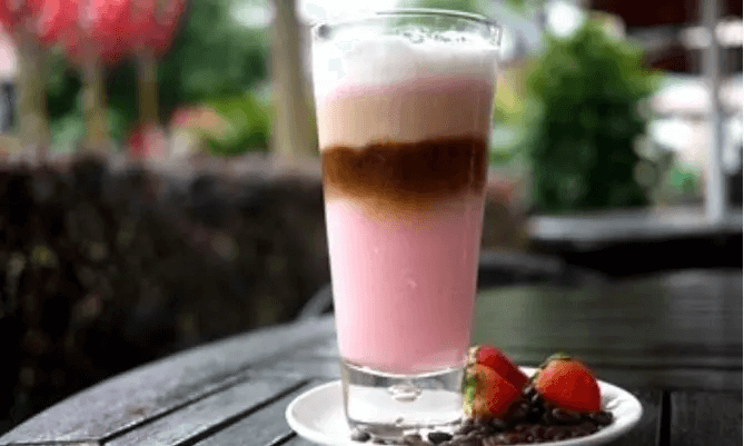 草莓咖啡卖相精致,口味细腻,是女孩必爱的,再配个小甜点,香气四溢,调和咖啡的浓烈,值得一试。